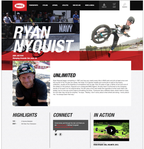 Bell Helmets was one of my favorite accounts to work on at Silverlign. They came to us with the challenge of designing a new responsive website, that would have a consumer friendly ecommerce experience. We able to deliver them a beautiful site complete with a state of the art buying experience, athlete profiles, and robust news and events. Hubert Shum, Kyle Maxwell and Doug Hughmanick played significant roles on bringing the design to life.