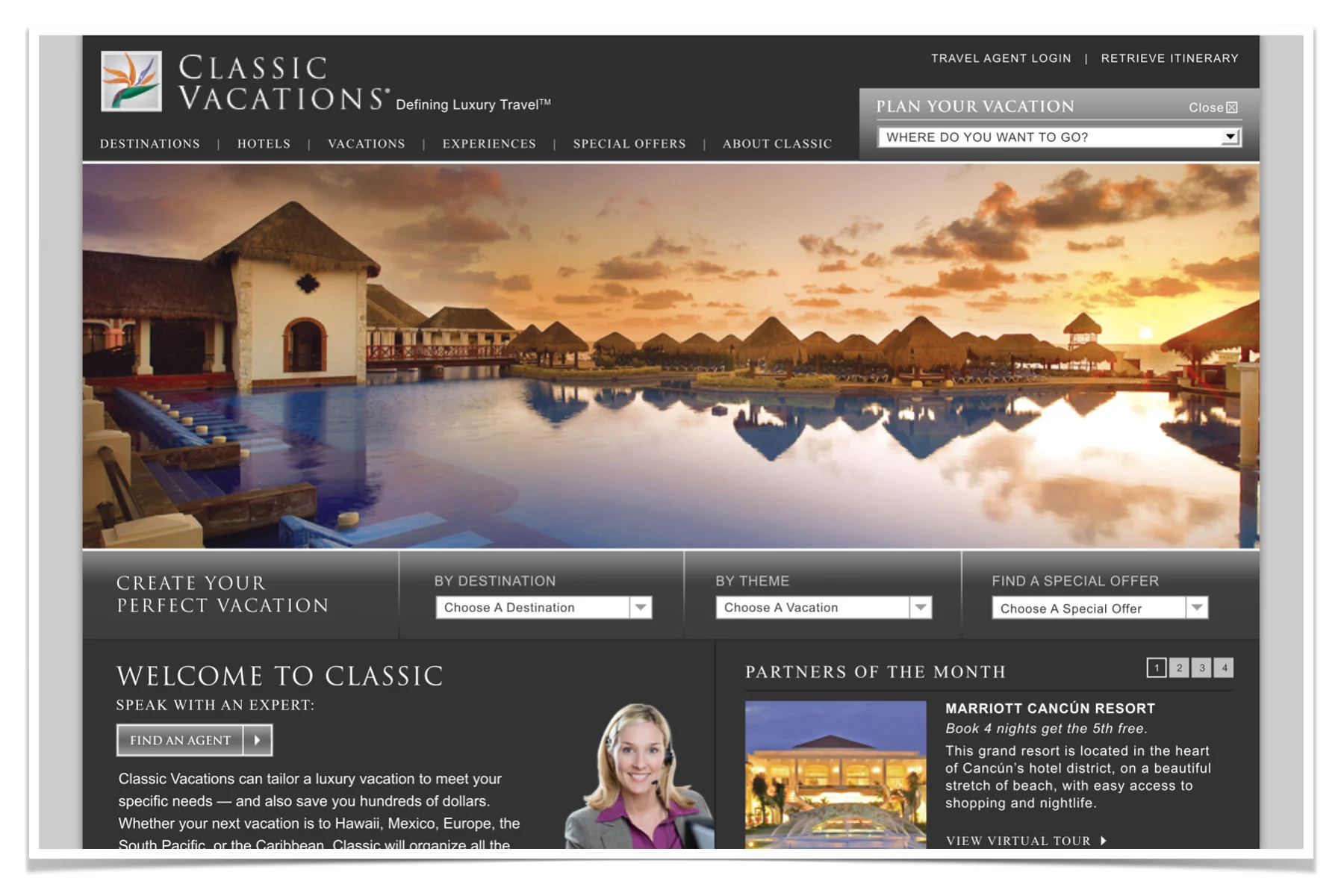 Classic Vacations is a leading travel company and Expedia’s luxury brand. While at Silverlign we worked on their marketing strategy and integrated communications initiatives. We worked closely with Classic on their corporate repositioning, ultimately resulting in a new brand identity and communications system that included their annual destination brochures. We continued to evolve the look over several years giving Classic its luxury look and feel. These are often regarded as the company’s finest and most effective marketing tools. We also designed Classic Vacations’ new Web site, direct mailers, travel document wallet and other collateral. Andrew Cambouris was the creative lead on many of these projects and Barbara Cox was our Account Director.